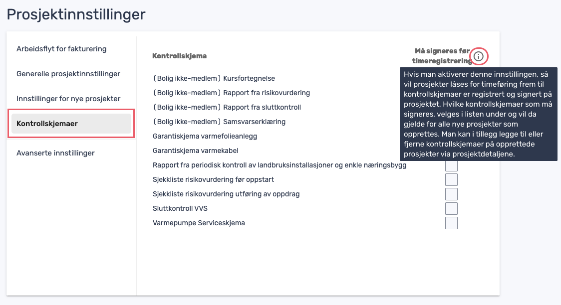 Før du begynner å bruke Elektro/VVS funksjonaliteten, er det lurt å se på innstillingene dine.