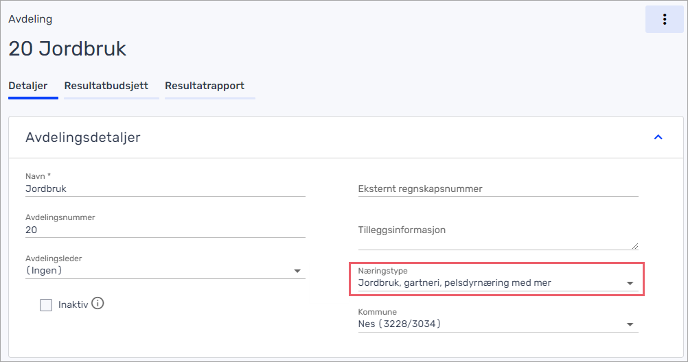Velg næringstype på avdelingen