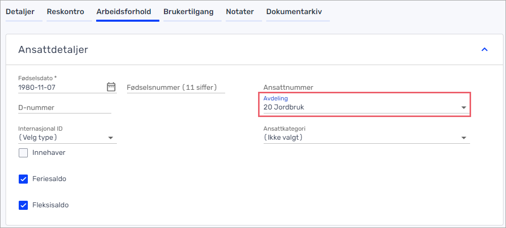 - Finn feltet «Avdeling» i seksjonen «Ansattdetaljer».