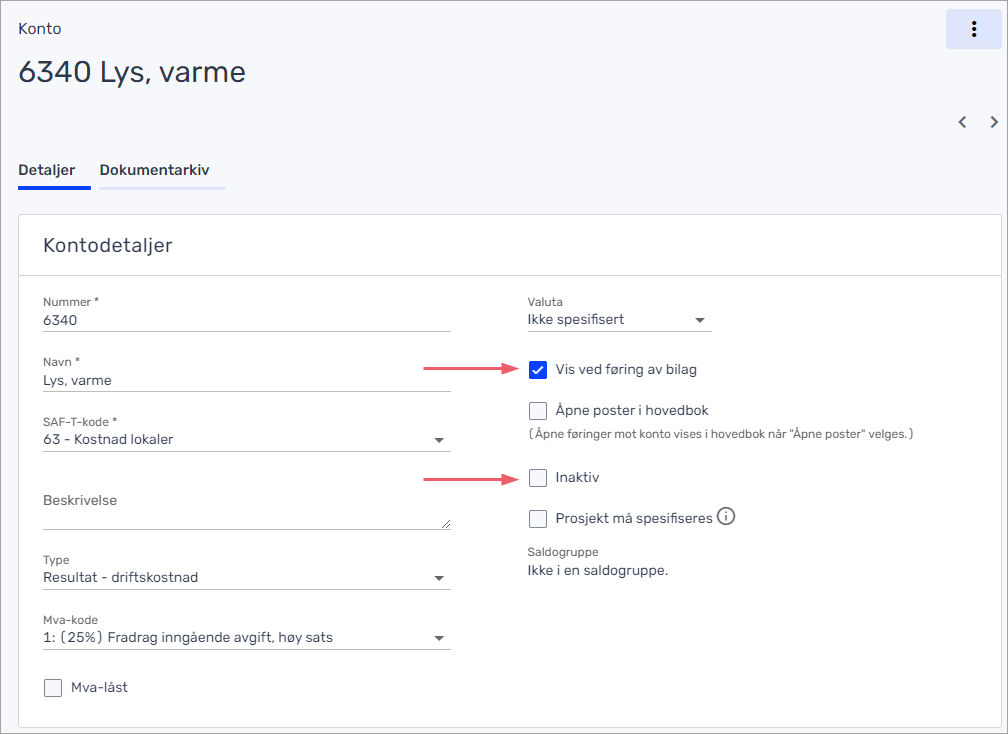 Hvis du ikke finner en konto i oppslaget, kan det være fordi kontoen er inaktiv eller ikke er synlig ved føring av bilag.