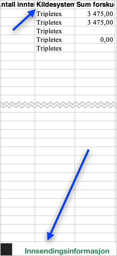 - Look at the tab for «Submission Information» and column “L”, which is named "Source systems". Here you can see which system the a-melding for the period is sent from. If there is another system as well as Tripletex, you have reported the employee twice.