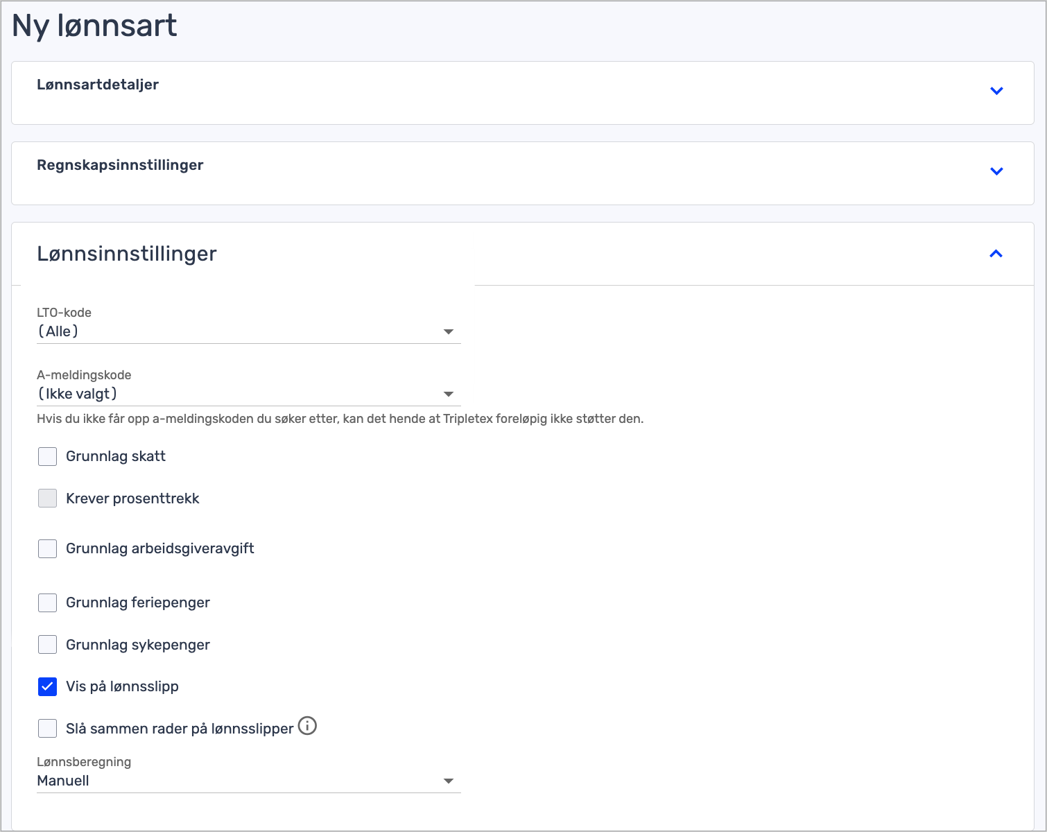 - Gå til Lønn > Innstillinger i hovedmenyen.