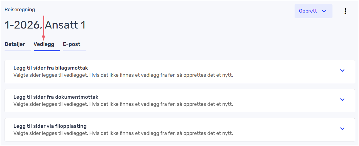 Ser du ikke denne fanen? Trykk på «Opprett» nederst til venstre på reiseregningen din.
