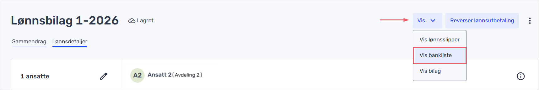 - Finn frem til lønnskjøringen du skal hente bankliste for.