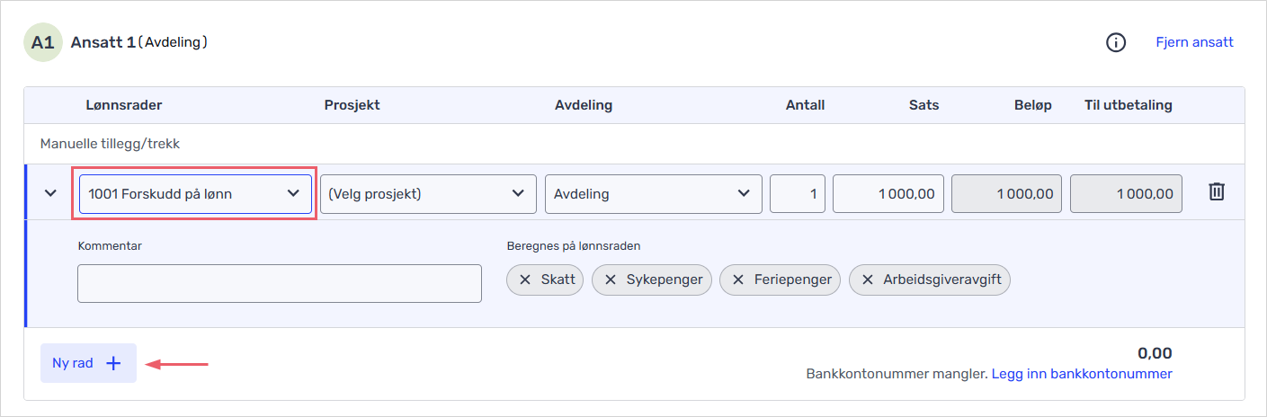 Hvis du ikke skal utbetale hele reiseregningen på førstkommende lønnsutbetaling, kan du velge å føre den som et forskudd.
