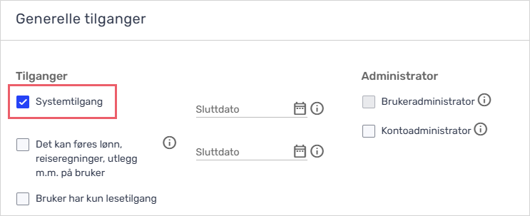 Brukerkategorier gir deg informasjon om tilganger som er aktivert på brukere i din konto som du vil bli fakturert for. Det spiller ingen rolle om brukeren er en ansatt eller kontaktperson – brukerkategorier fungerer på samme måte.