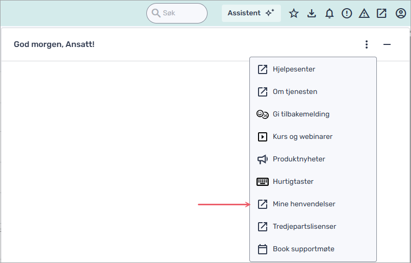 Har du vært i kontakt med support, og ønsker å finne frem til svarene du fikk? Du har tilgang til samtalen gjennom kontoen din i Tripletex.