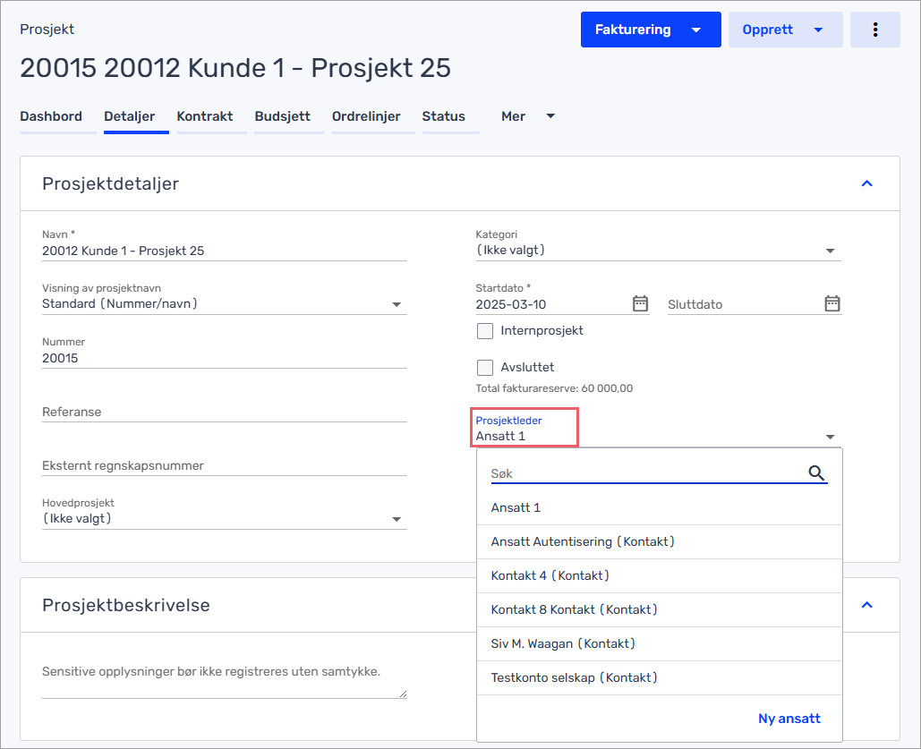 Du kan endre prosjektleder på to forskjellige måter. Enten på et prosjekt, eller for flere prosjekter av gangen. Trykk på overskriften nedenfor for å lese mer om metoden du skal bruke.