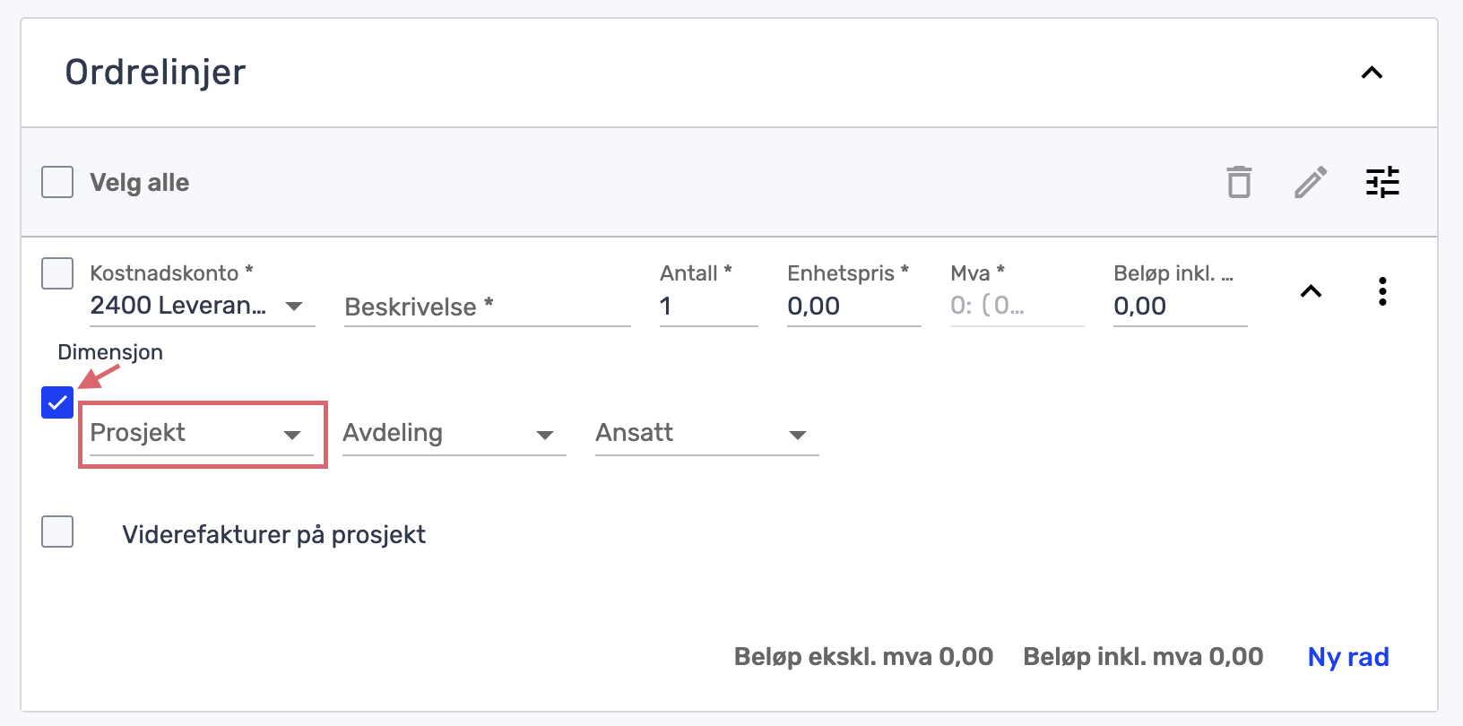 Da kan du følge denne instruksen for hvordan du velger prosjekt på detaljert føring av inngående bilag: