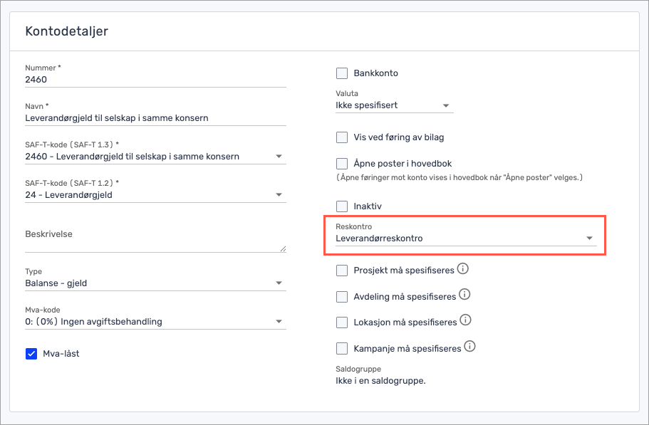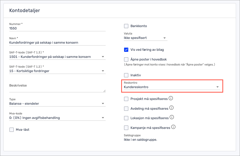 Etter du har aktivert «Flere reskontroer» under regnskapsinnstillinger, setter du opp en regnskapskonto som en alternativ kunde-/leverandørreskontro.