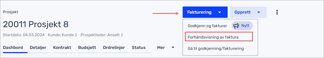 For å se en forhåndsvisning av prosjektfakturaen gjør du følgende: