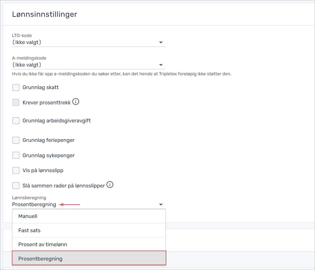- På «Lønnsberegning» velger du Prosentberegning.