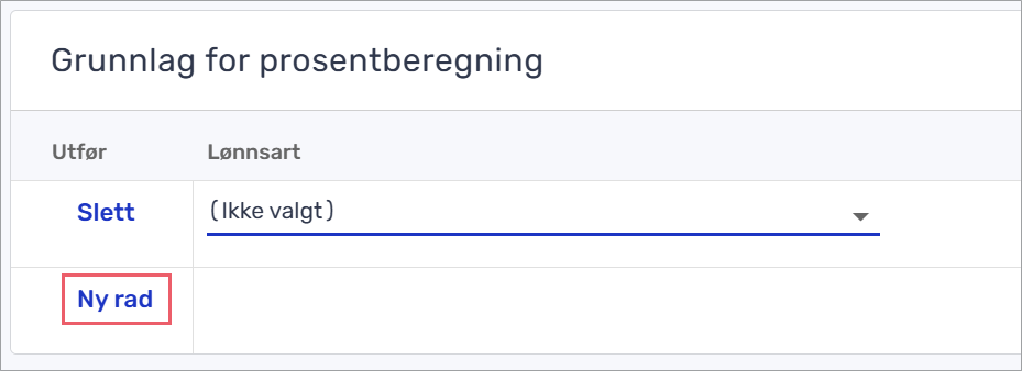 - Klikk på «Ny rad» og velg lønnsart.