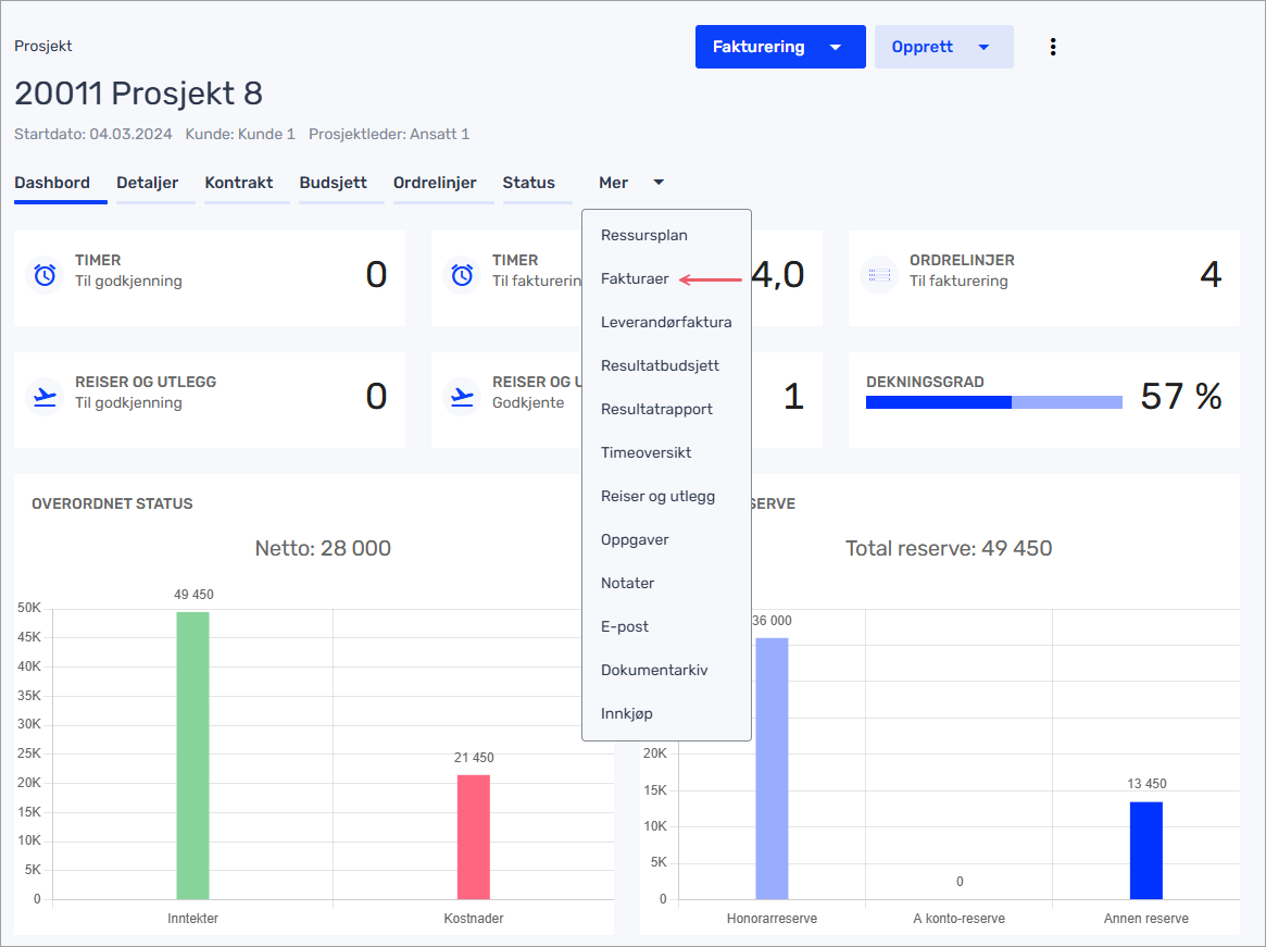 Hvis du har fakturert feil på et prosjekt, kan du kreditere prosjektfakturaen. Du kan kreditere hele eller deler av prosjektfakturaen. Velg fremgangsmåten du vil lese mer om nedenfor.