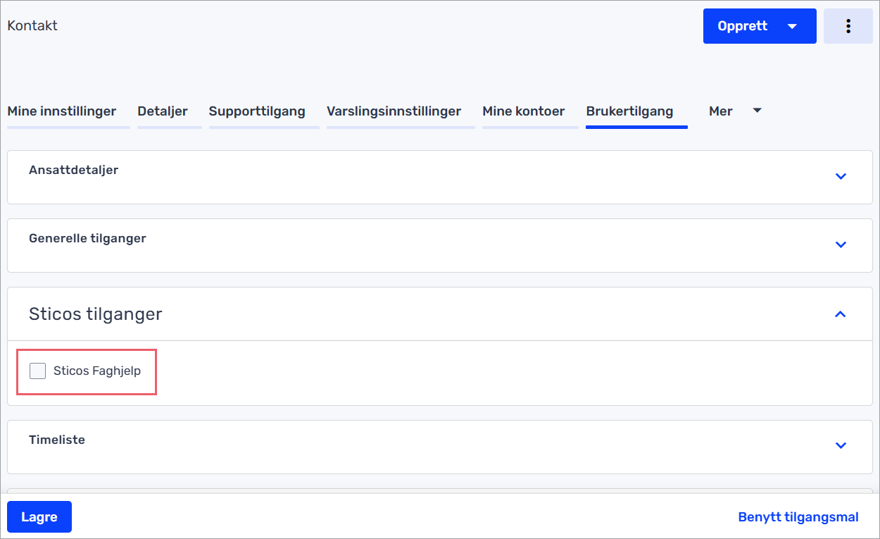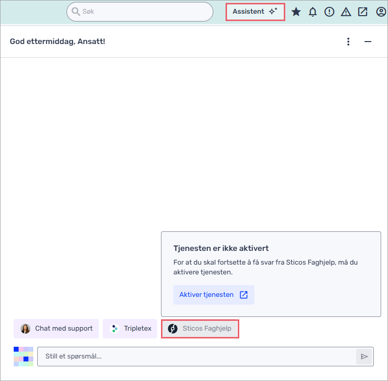Har du aktivert Sticos Faghjelp i kontoen, men har fortsatt ikke tilgang? Først må det aktiveres på selskapsnivå, deretter på brukerne som skal ha tilgang. Trykk på menyene nedenfor for å lese mer om de to fremgangsmåtene.