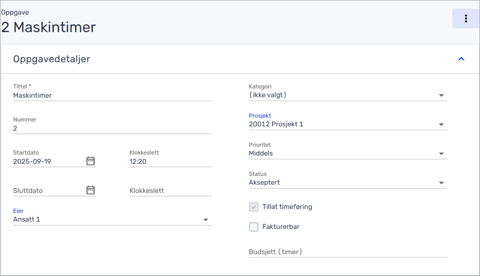 - Fakturerbar: Huk av for å kunne fakturere for timer ført på oppgaven.