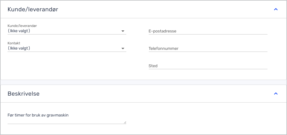 I tillegg til informasjonen ovenfor, kan du velge å knytte oppgaven til en kunde/leverandør, en bestemt kontakt og registrere kontaktinformasjon. Du kan også legge til en beskrivelse av oppgaven.