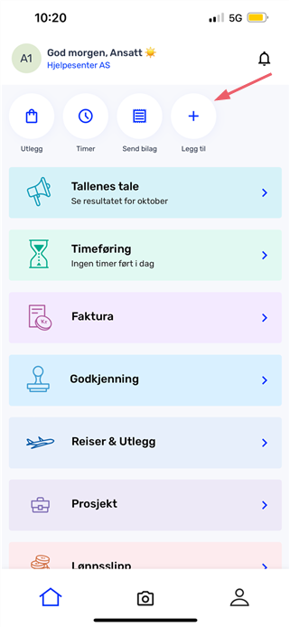 På startsiden i appen får du opp modulene du har tilgang til. Hvilke moduler og funksjoner du har tilgang til, er bestemt av hvilke moduler kontoen (firmaet) har og hvilke tilganger brukeradministratoren i kontoen har gitt deg.