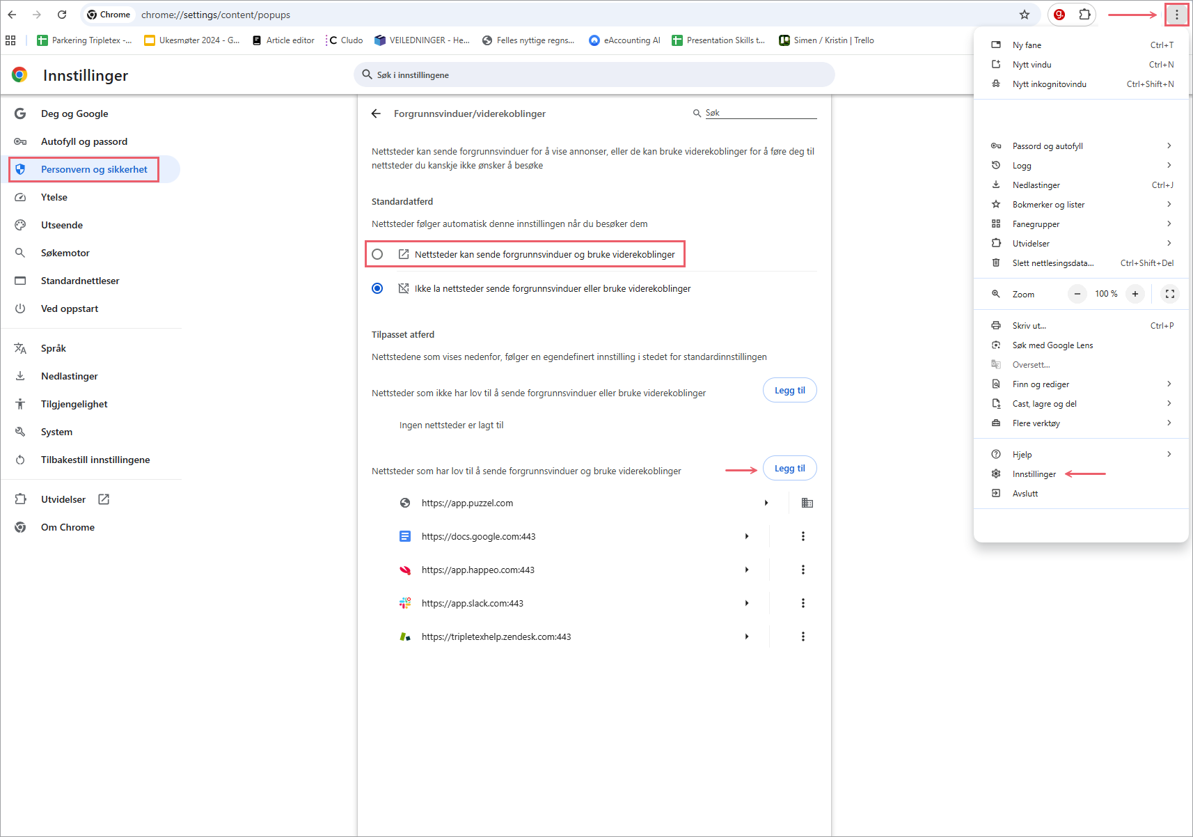 Bruker du en eller annen form for adblocker, kan dette være årsaken. Forsøk å deaktivere adblocker for www.tripletex.no før du endrer på personverninnstillingene.