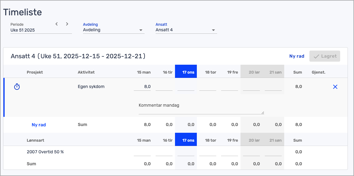 - Legg inn antall timer. Du kan også legge inn en kommentar.