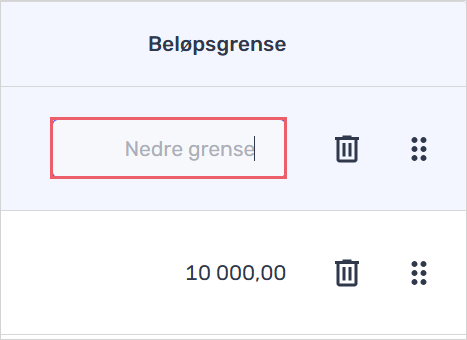 - Beløpsgrenser: Sett eventuelle beløpsgrenser per steg i flyten. Det blir en nedre grense for når det skal attesteres i valgt steg i flyten din. Flyten kan på denne måten varieres etter beløp,