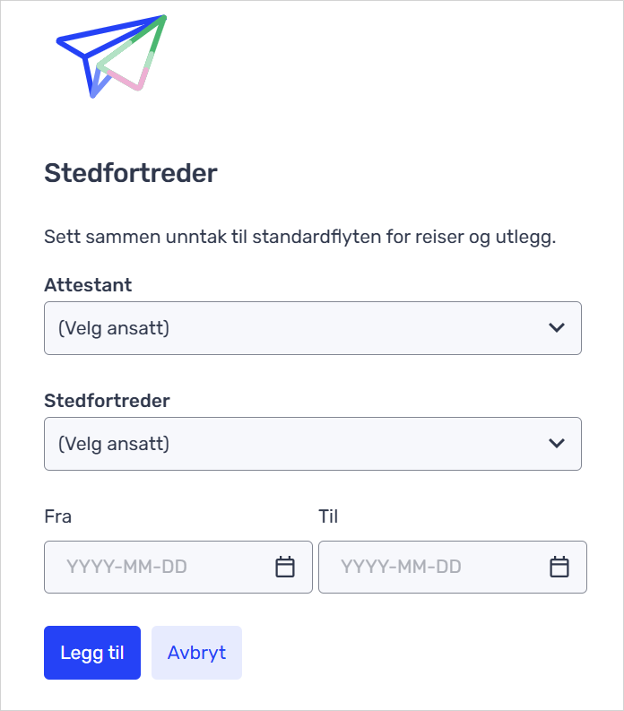 - Velg attestant: Du kan velge om det skal være en i en gitt rolle, og/eller spesifikk person som skal attesterere reiserregninger og ansattutlegg.