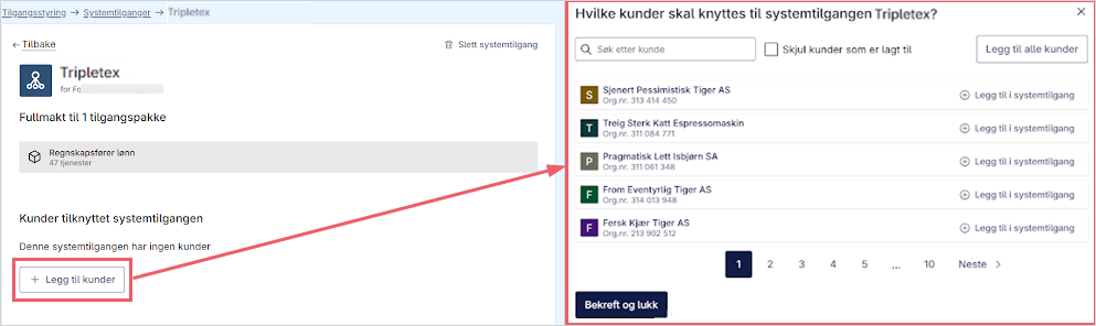 - Legg til dine klienter (kunder) du skal ha tilgang til å sende inn til Altinn for.