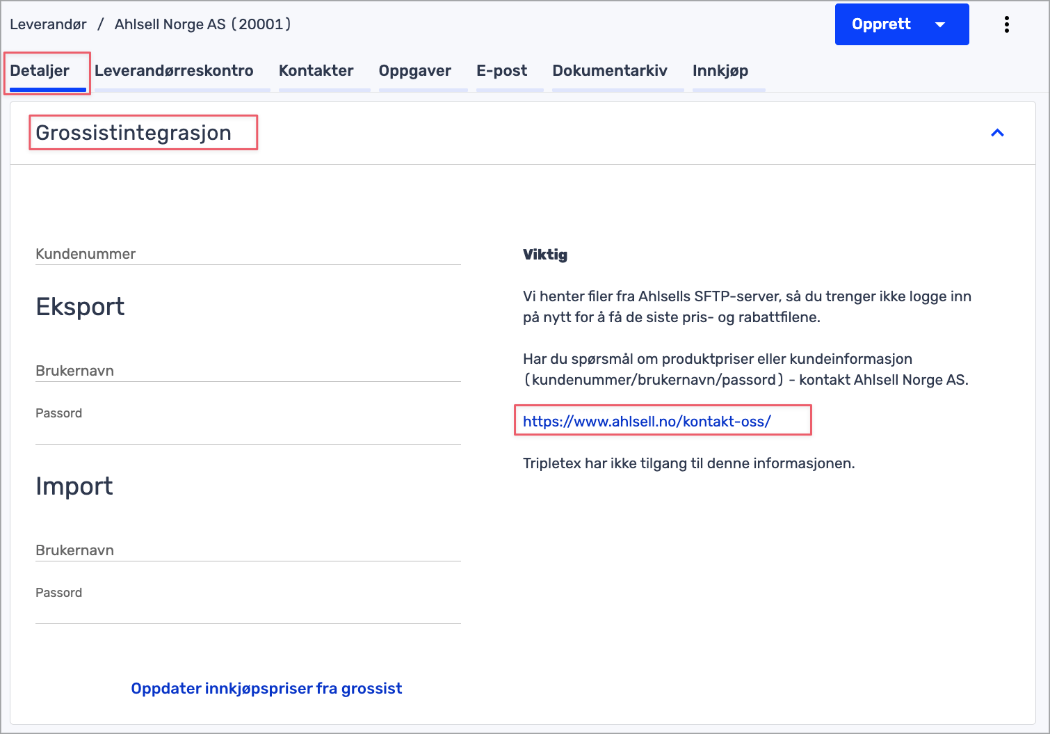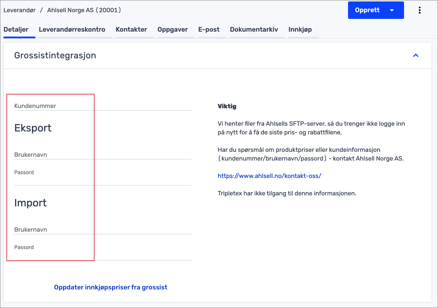 For å sette i gang grossistintegrasjonen, må du registrere brukernavn og passord på grossistene som er automatisk opprettet.