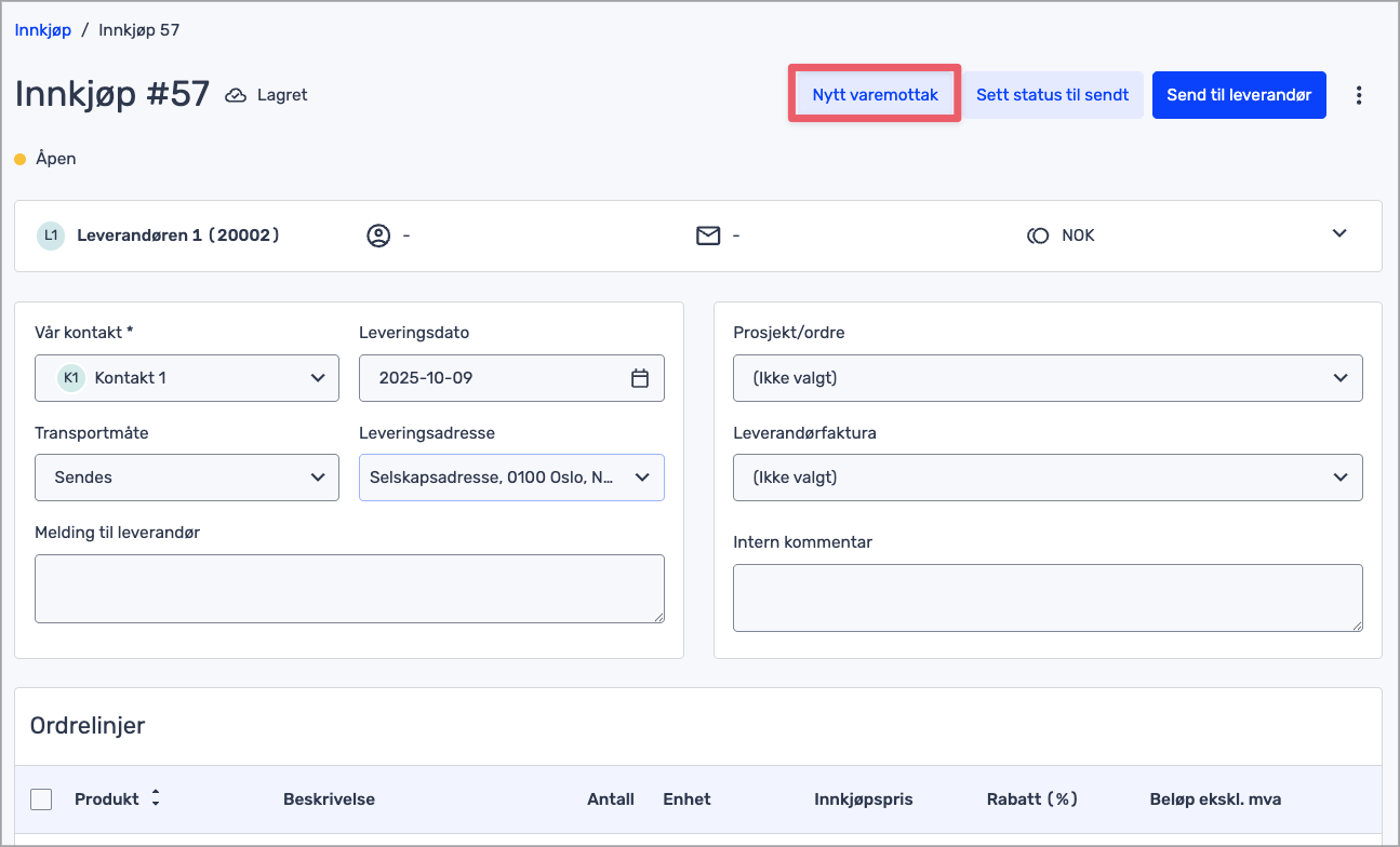Slik tar du et varemottak via et innkjøp