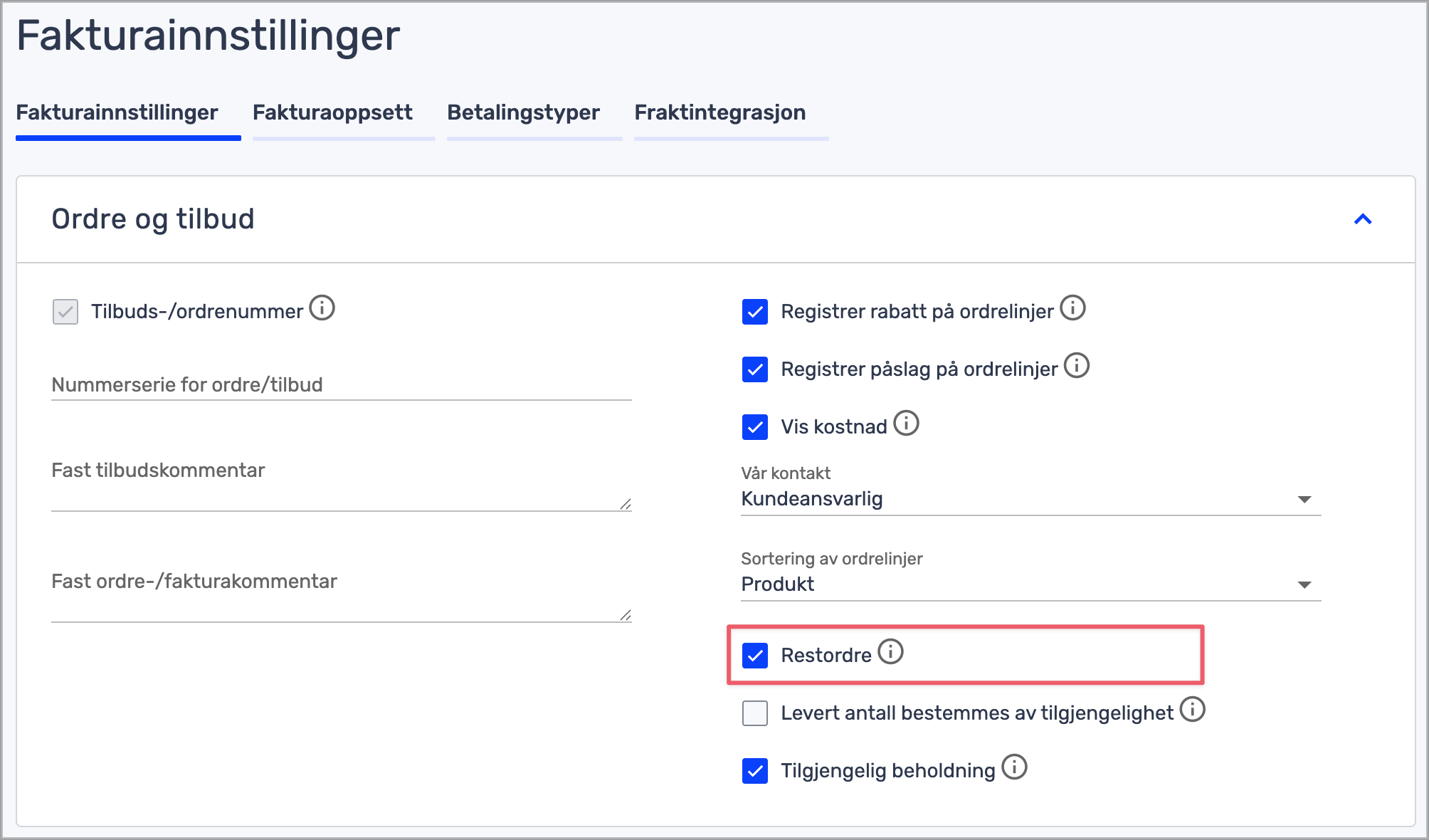 Du må ha «Logistikk basis» for å bruke restordre. Les mer her.