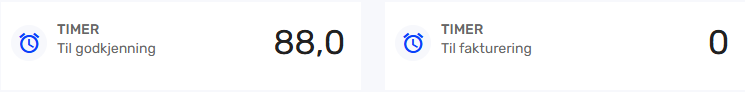 Hvis du har aktivert «Godkjenning av timer til fakturering» i prosjektinnstillingene, ser du hvor mange timer du har som skal godkjennes. Du ser også hvor mange timer som er ført på prosjektet totalt.
