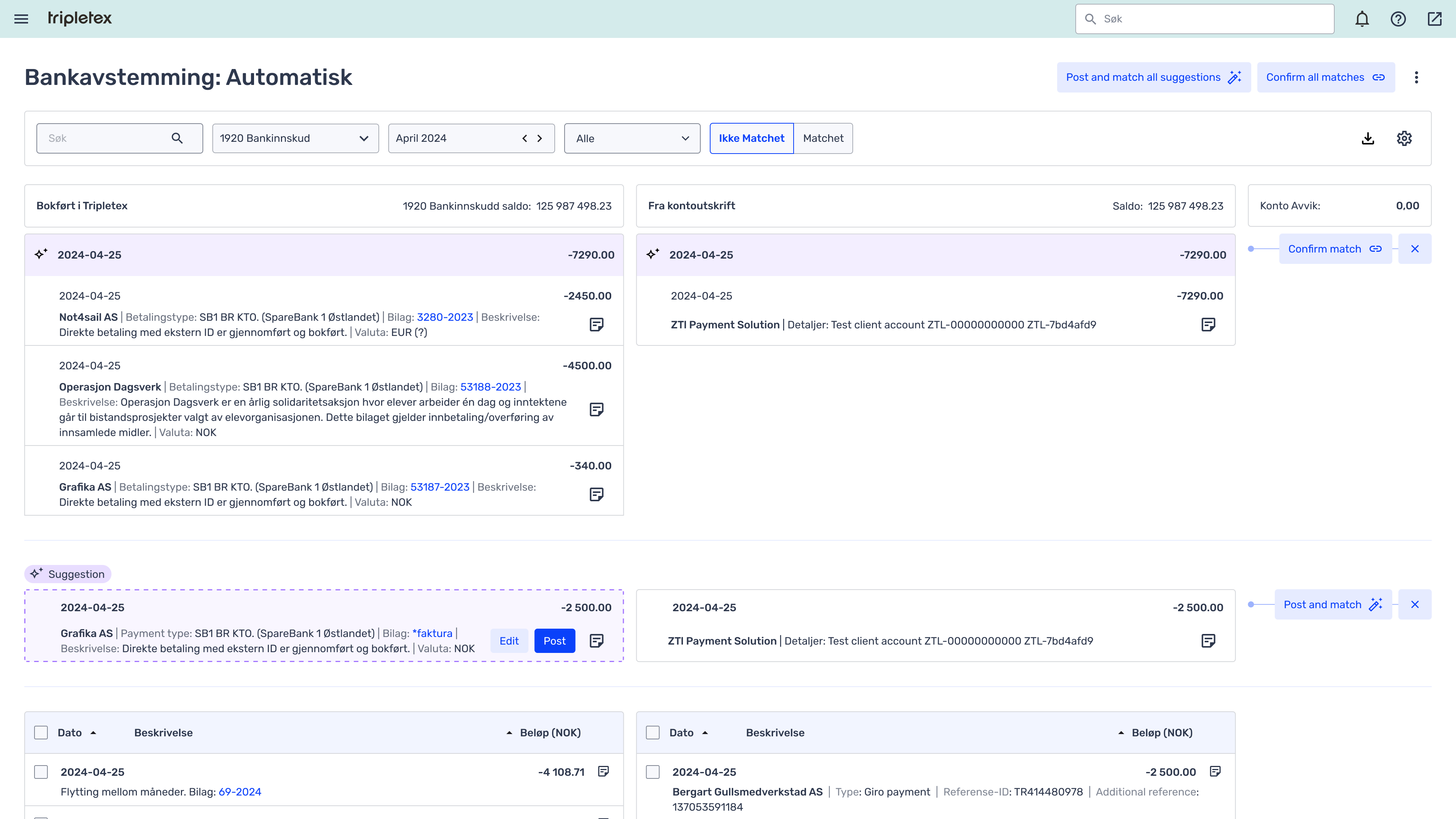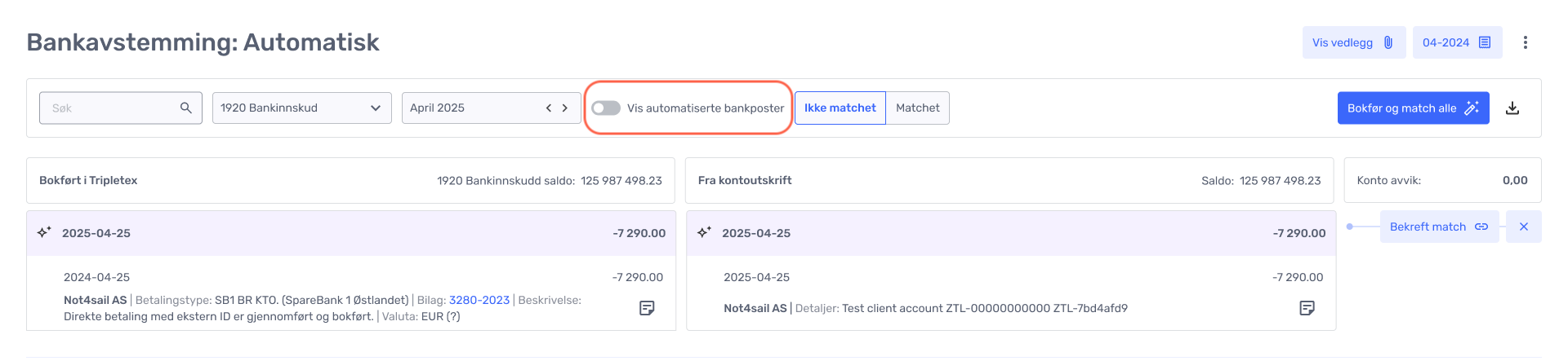 Hvis du har denne funksjonen aktivert, vil bankavstemmingen se slik ut: