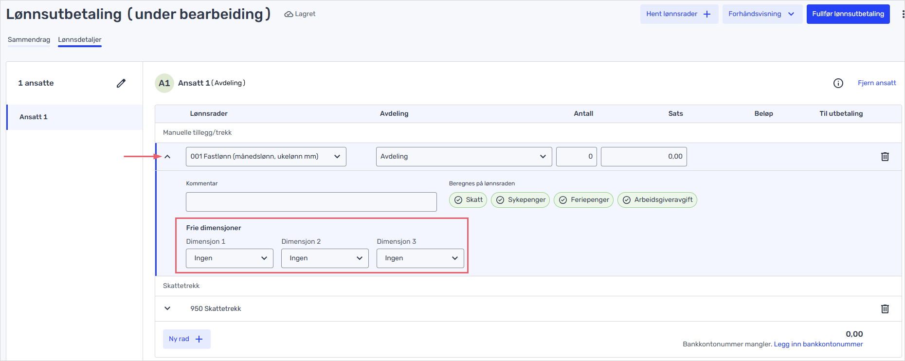 Slik legger du til dine frie dimensjoner på lønnsutbetalingen